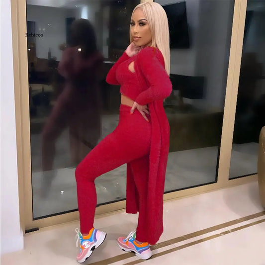 Casual 3 Piece Set Streetwear Womens Outfits Wholesale Items Long Cardigan and Vest Leggings Stretchy Matching Suit